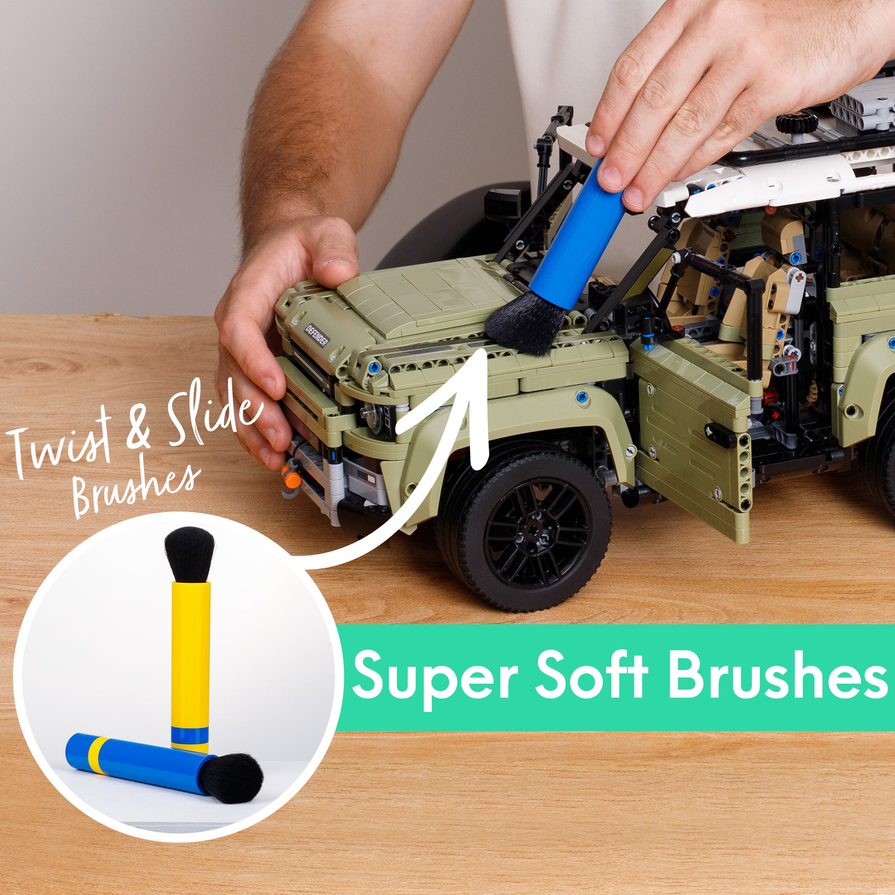 SAFE FOR DELICATE BUILDS – Extra-soft cleaning brushes protect bricks and fragile display items while removing dust and debris.